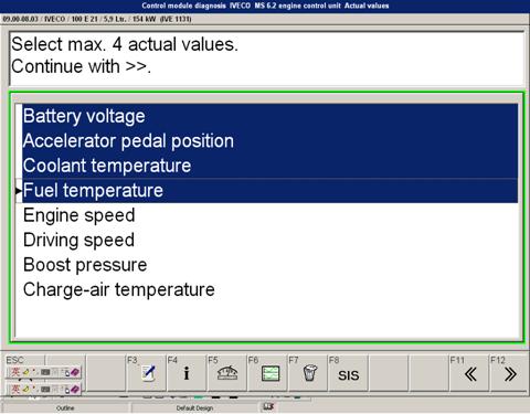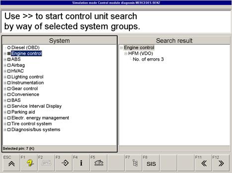 如果名稱前面的框有一灰色背景,在此組列出的系統(tǒng)在自動組搜索不能發(fā)現(xiàn)。 (通過點擊加符號或F7可以獲得清單)。如果安裝在車上的控制單元在組搜索時不能被找到,相關的控制單元必須在清單中手動選擇。通過F7, 你可以打開或關閉自動選擇。