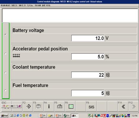 在發(fā)動機起動時,不正確的軌壓,轉(zhuǎn)速信號,同步信號的缺失,都可導致發(fā)動機無法起動。通過這個測試可發(fā)現(xiàn)導致無法起動的原因。測試條件:發(fā)動機無法起動測試方法:起動機帶動發(fā)動機運轉(zhuǎn)約五秒鐘。KTS 可讀出發(fā)動機無法起動的原因,如:無轉(zhuǎn)速信號等。