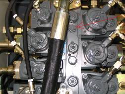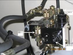 應為390 bar,否則調(diào)節(jié)工作閥塊動臂調(diào)節(jié)螺釘 ,如下圖里側(cè)螺釘。