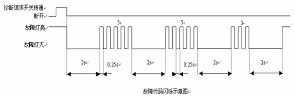 按下—松開診斷請求開關(guān)即可激活閃碼。每一次操作只閃爍一個故障碼,依次進行即可讀完所有故障碼。