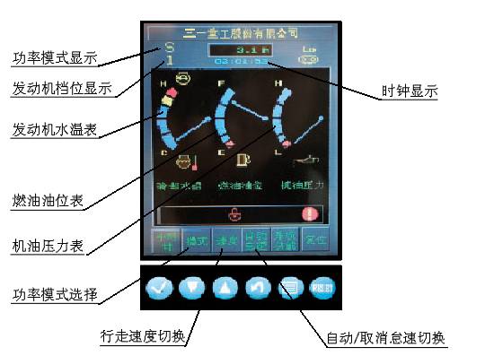 a燃油箱油位和發(fā)動機(jī)冷卻液溫度以指示針儀表的形式在顯示屏上實時監(jiān)控。