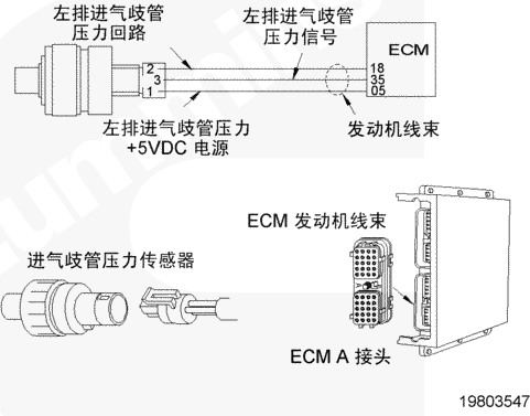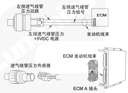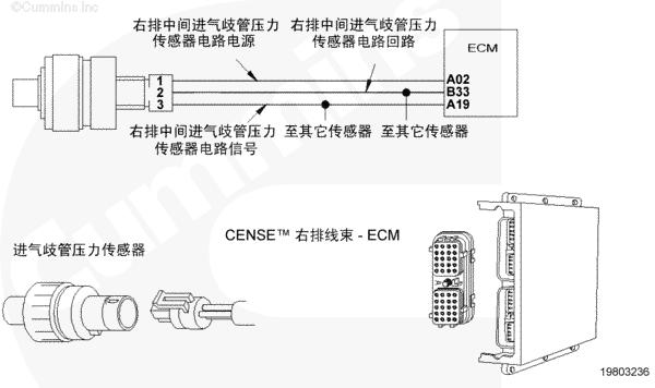 該故障可能的故障模式有觸針之間對(duì)信號(hào)或電源線上的接地短路、傳感器損壞或者 CENSE™ ECM 中電源損壞。