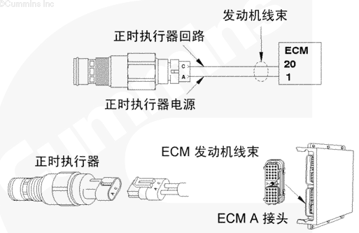 正時(shí)執(zhí)行器電路圖向正時(shí)執(zhí)行器提供電流。CM500 ECM 向正時(shí)執(zhí)行器指派變動(dòng)的電流量來(lái)控制噴油器正時(shí)壓力量。