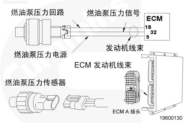 燃油泵壓力傳感器電路圖通過(guò)康明斯QSK78發(fā)動(dòng)機(jī)線束向 CM500 ECM 提供燃油泵壓力傳感器信號(hào)。CM500 ECM 利用燃油泵壓力傳感器信號(hào)監(jiān)測(cè)從控制閥體輸送到噴油器正時(shí)油腔的燃油泵壓力。
