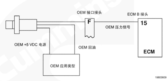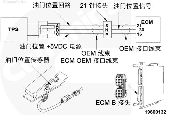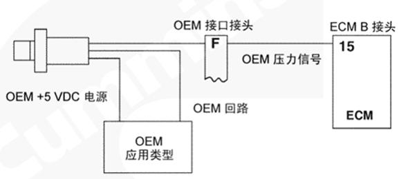 油門(mén)踏板通過(guò) OEM 線束和 OEM 接口線束向 CM500 ECM 提供駕駛員油門(mén)指令。CM500 ECM 利用此信號(hào)來(lái)確定燃油油軌執(zhí)行器閥的供油指令。