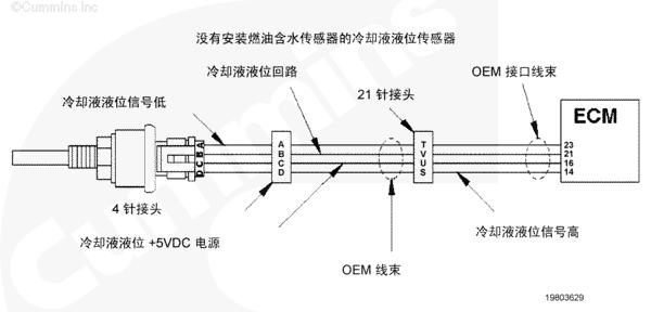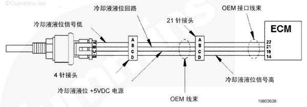冷卻液液位傳感器監(jiān)測(cè)冷卻系統(tǒng)中的冷卻液液位,并將信息通過(guò) OEM 線束傳送至 CM500 康明斯QSK78電子控制模塊 (ECM)。
