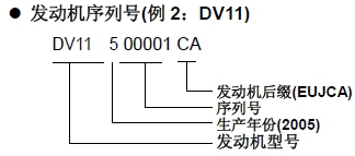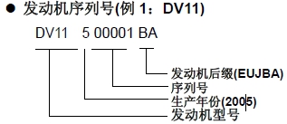 發(fā)動機(jī)型號和序列號設(shè)置在圖示位置。當(dāng)尋求必要的產(chǎn)品保證和部件訂購時,這些數(shù)字是必要的。同時通過各數(shù)字的位置也指明了發(fā)動機(jī)的型號和系列號。