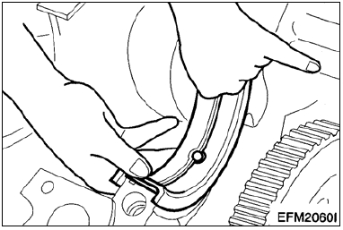� 將主軸承裝入氣缸體內(nèi)并用發(fā)動(dòng)機(jī)油涂抹主軸承。然后將有孔的軸承裝入氣缸體側(cè)壁,無(wú)孔的軸承裝入軸承蓋,小心不要弄混。
