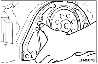 � 在氣缸體表面要安裝飛輪殼的部位安裝墊圈。(為防止墊圈滑下,在氣缸體表面上涂抹油脂。)