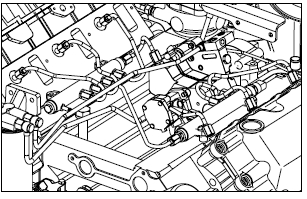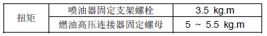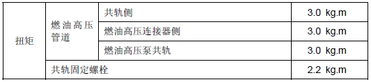 � 在共軌和燃油高壓連接器之間安裝燃油高壓管道,然后一個(gè)氣缸一個(gè)氣缸地緊固至規(guī)定扭矩。