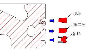 � 識(shí)別環(huán)底端的“Y”或“TOP”標(biāo)志,以免和活塞環(huán)頂部的位置顛倒,將有標(biāo)志的一端向上。(標(biāo)有“Y”或“TOP”的一面為上面。)