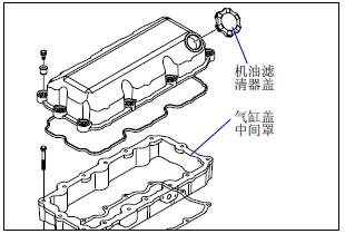 � 將機(jī)油濾清器蓋安裝到氣缸體,按對(duì)角順序擰緊螺栓。