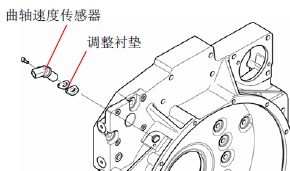 � 測(cè)量傳感器組裝部件和飛輪之間的間隙,使用調(diào)整襯墊進(jìn)行組裝。