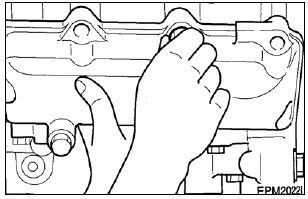 � 在氣缸體表面的襯墊涂液體以便安裝燃油高壓泵罩蓋。