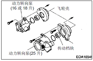 � 將動(dòng)力轉(zhuǎn)向泵組裝到飛輪殼上。