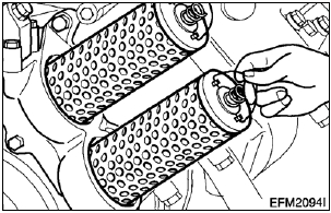 � 當(dāng)更換新的燃油濾清器時(shí),在濾芯中加油后組裝燃油濾清器。