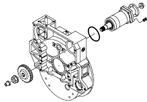 � 在機(jī)油泵表面要安裝壓力調(diào)節(jié)閥的位置上安裝墊圈,并將壓力調(diào)節(jié)閥置于其上。