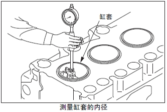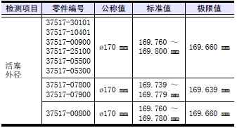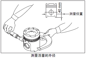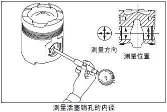測(cè)量活塞銷孔的內(nèi)徑。超過極限值時(shí)更換新活塞。