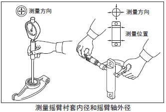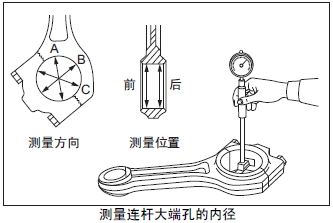 測(cè)量連桿襯套的內(nèi)徑。超過極限值時(shí)更換新的連桿襯套。