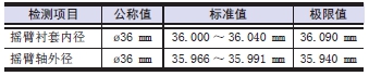 測(cè)量大端孔內(nèi)徑時(shí),分別按照?qǐng)D示A、B、C 方向,測(cè)量前后2 處。將A、B、C 的最大值減去最小值為橢圓量。超過極限值時(shí)更換新品。