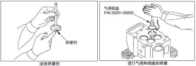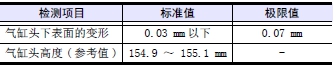 在曲軸箱的上表面放置直尺,用厚薄規(guī)測(cè)量變形量。超過極限值時(shí),更換新品或研磨修整。進(jìn)行研磨修整時(shí),要記錄最大研磨量。另外,氣缸頭下面進(jìn)行研磨修整時(shí),合計(jì)的最大研磨量限定在0.50 mm以內(nèi)。