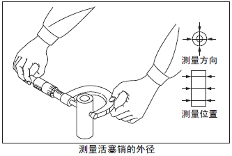 測(cè)量活塞銷的外徑。超過極限值時(shí)更換新的活塞銷。