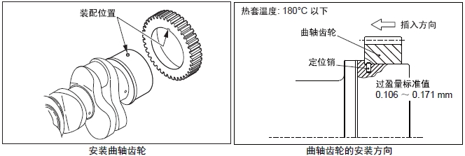 (1) 測(cè)量曲軸外徑和曲軸齒輪的內(nèi)徑,確認(rèn)過盈量。