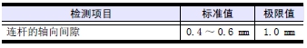 (6) 檢測三菱發(fā)動(dòng)機(jī)連桿的軸向間隙,調(diào)整至標(biāo)準(zhǔn)值范圍內(nèi)。