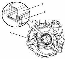 使用工具 (A) 拆卸曲軸后油封。