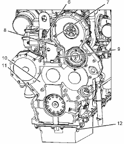 注: 如果卸下軸組件,跳過(guò)步驟 12。 需要重新調(diào)整凸輪軸齒輪和可調(diào)惰輪的齒隙。 請(qǐng)參閱測(cè)試與調(diào)整, "齒輪總成(前)- 正時(shí)"。