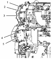 將適當(dāng)?shù)钠鸬踉O(shè)備連接在前齒輪室 (10) 上。 前齒輪室 (10) 的重量約為 57 kg (125 lb)。 拆卸螺栓 (11) 。