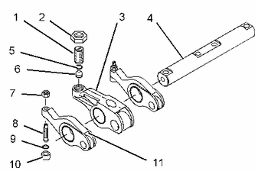 將調(diào)整螺釘 (8) 安裝到氣門搖臂 (11) 上。 把防松螺母 (7) 安裝到調(diào)整螺釘上。