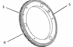 從密封盤 (3) 上卸下 O 形密封圈 (5) 和 O 形密封圈 (6) 。