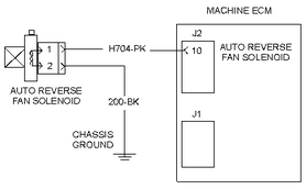 此診斷代碼與自動風(fēng)扇反轉(zhuǎn)電磁閥有關(guān)。 FMI 05 表示 ECM 已確定電路中存在開路。