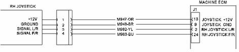 該診斷代碼與右操縱手柄前進(jìn)和后退位置傳感器有關(guān)。 FMI 13 表示 ECM 已確定傳感器的信號不在預(yù)期限定范圍內(nèi)。