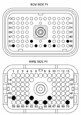 ECM 通過 ECM 的 15 安培保險(xiǎn)絲持續(xù)接收蓄電池電壓。 無開關(guān)蓄電池電壓通過 P1-48 、P1-52 和 P1-53 供至 ECM。 蓄電池負(fù)極通過 P1-61、P1-63 和 P1-65 供至 ECM。