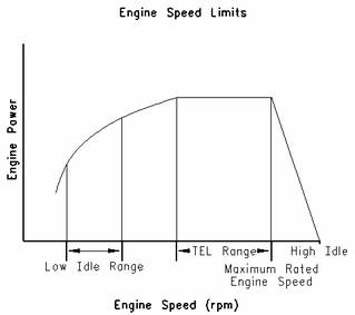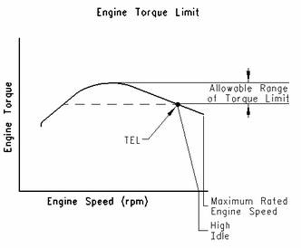 "TEL"是一個(gè)客戶可編程參數(shù),用于定義最大功率下允許的最高發(fā)動(dòng)機(jī)轉(zhuǎn)速。最大可將"TEL"編程設(shè)定在最高發(fā)動(dòng)機(jī)額定轉(zhuǎn)速上。"TEL"通過(guò)發(fā)動(dòng)機(jī)過(guò)載運(yùn)轉(zhuǎn)曲線定義。