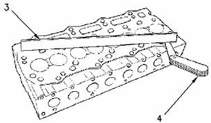 測量卡特彼勒3064/6發(fā)動機(jī)缸蓋的平直度。利用直尺(3)和塞規(guī)(4)測量平直度。