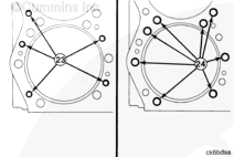 在 1993 年 11 月,從康明斯發(fā)動(dòng)機(jī)生產(chǎn)序號(hào) 33124631 開始,K38 和 K50 康明斯發(fā)動(dòng)機(jī)缸體就在兩個(gè)位置進(jìn)行了額外的機(jī)加工 [除了在 1992 年 1 月開始實(shí)施的 K2000E 和 K1800E 外] 以降低機(jī)油阻力。