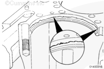 不必機(jī)加工缸體以去除可接受的裂紋。如果在初始檢查中發(fā)現(xiàn)不可接受的裂紋,則必須機(jī)加工沉孔臺(tái)階。與 Cummins® 特約維修站聯(lián)系。