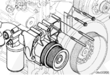 用兩根長螺栓將制冷劑壓縮機支架安裝到齒輪室上。擰緊螺栓。