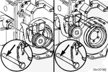 在 V 形帶箍的內(nèi)側涂一層高溫防粘結復合劑,以確保對帶箍適當加載。在排氣歧管前部安裝 v 形帶箍。在與排氣歧管前部分連接的 EGR 冷卻器導引端安裝一個新的密封墊。將 EGR 冷卻器裝到機油冷卻器總成的雙頭螺柱上。