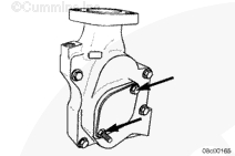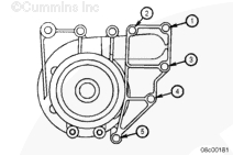 使用清潔的康明斯發(fā)動機機油潤滑所有水泵螺栓的螺紋和螺栓端頭底部。安裝水泵和兩個下部螺栓。擰緊螺栓,將水泵固定到位。