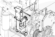 將充電機/制冷劑壓縮機安裝支架安裝到頂部的齒輪室和底部的水泵上。安裝支架和 6 根安裝螺栓。擰緊螺栓使之進入齒輪室。