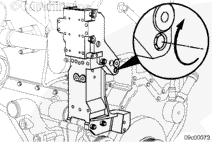 安裝 EGR 冷卻器冷卻液供應管安裝支架和螺母。擰緊螺母。