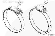 注: 此位置可以采用兩種不同形式的軟管卡箍。無論采用哪種卡箍,每個卡箍的扭矩值相同。
