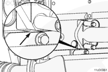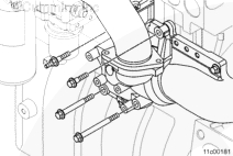 拆下兩個雙頭導向螺柱,然后安裝其余的安裝螺栓。擰緊螺栓。扭矩值: 72 n.m [53 ft-lb]