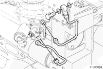 安裝 EGR 冷卻器冷卻液排氣管。將排氣管的剛性部分與 EGR 冷卻器相連,而將柔性部分與 EGR 冷卻器冷卻液回流管相連。