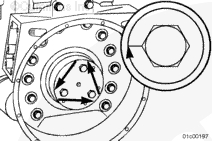 使用飛輪螺釘套筒(零件號 2892191)分兩步擰緊螺釘。按照圖示的順序。