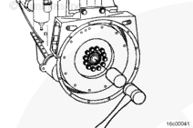 飛輪裝配螺釘應為至少帶滾壓螺紋的SAE 8級螺釘。使用同樣的更換零件,否則可能造成飛輪損壞,并導致人身傷害或財產損失。